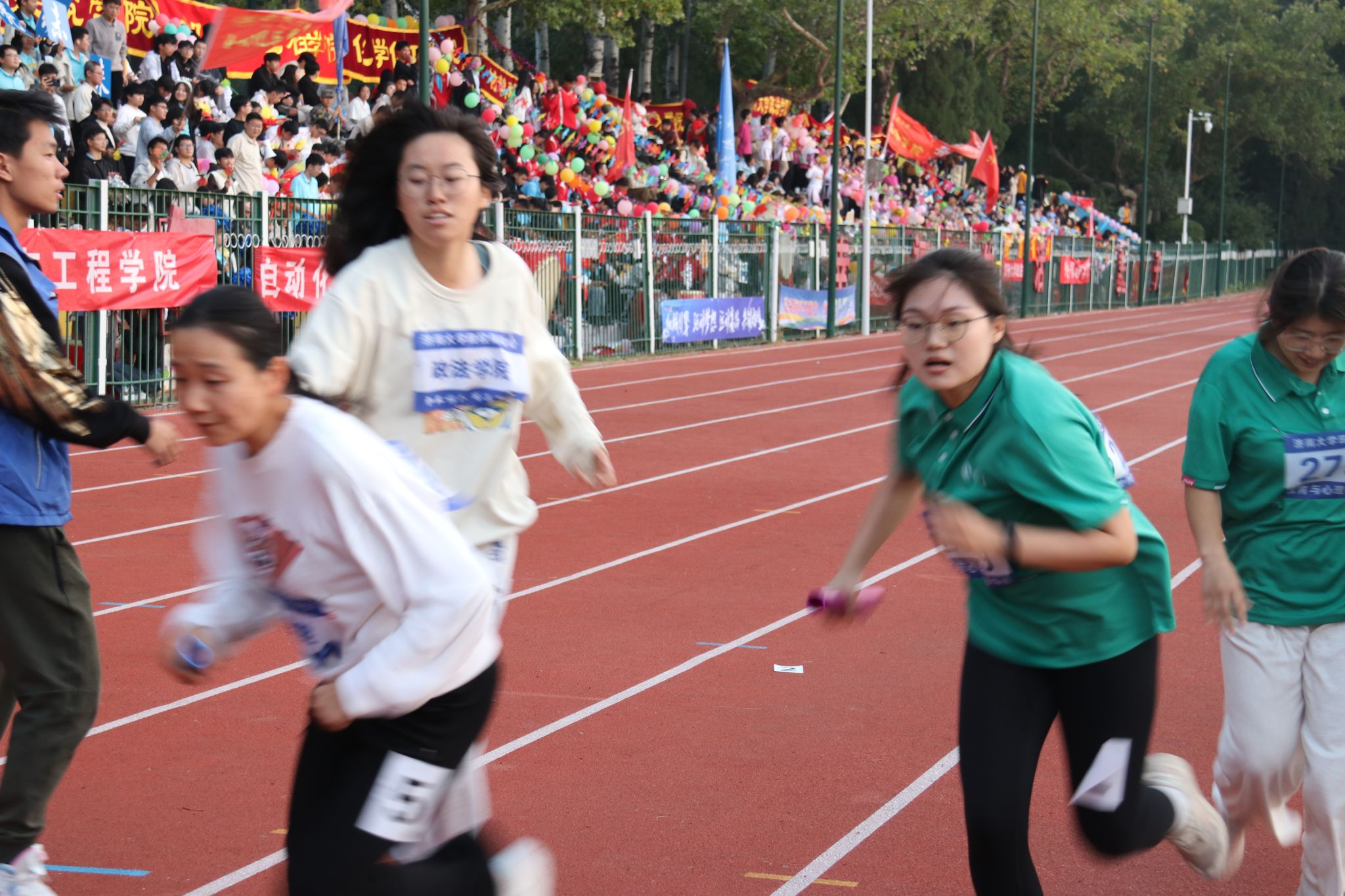 2024 年 10 月 24 日,太阳官网的查雅贞、张梦昕、李依然、王睿同学在女子 4×400 米接力中奋勇争先,完美呈现出济大学子的昂扬风采,凸显了法学院的青春活力。在此项比赛中,查雅贞、张梦昕、李依然、王睿同学荣获团体第三名的非凡佳绩。