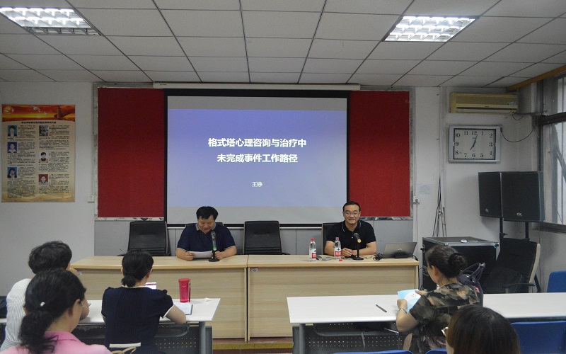 该次讲座以“格式塔心理咨询与治疗中未完成事件的工作路径”为主题,从格式塔心理咨询方法、发展趋势与特点及格式塔治疗四大理论支柱、未完成事件、未完成事件的工作路径、在教学与工作中的应用等展开。王铮博士在讲述过程中,穿插实际案例,精彩纷呈,虽然室外大雨滂沱,室内却如沐春风,随着王铮博士风趣幽默的话语和深入浅出的讲解,大家对格式塔都有了更深入的接触和了解,实际案例的分享,让大家震撼于格式塔的魅力。王铮博士提出的格式塔“五不原则”,则对建立良好的日常人际关系具有指导意义。
