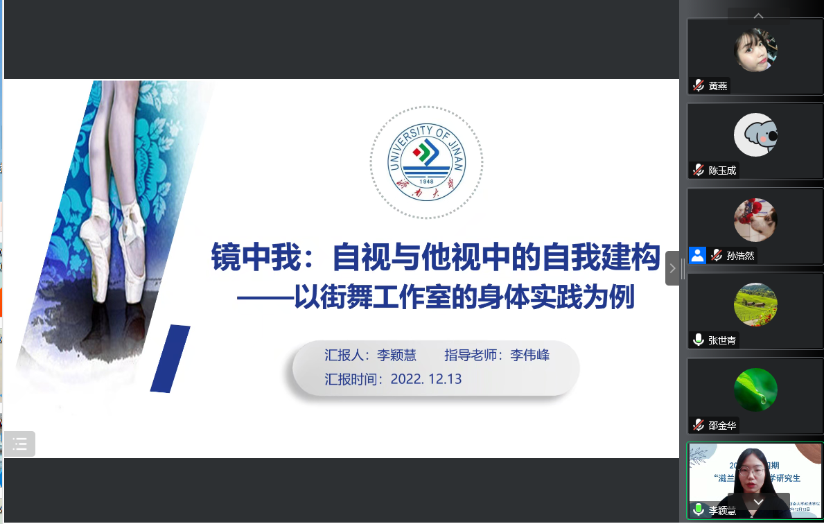 2022年12月13日下午,太阳官网2022年第四期“滋兰苑”社会学研究生学术论坛在腾讯会议室成功举办。本次论坛邀请龚晓洁老师、邵金华老师、张银老师、胡艳蕾老师、张世青老师和陈玉成老师担任点评嘉宾,全体社会学研究生参加,院研究生会竞赛部孙浩然同学担任主持。