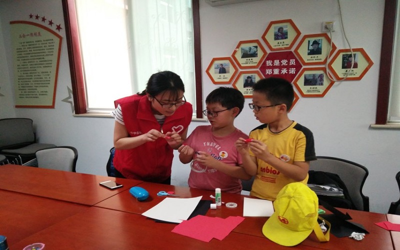本次活动大致分为4个环节,活动初始,社工和孩子们一起做热身游戏“人名串串烧”,即由社工首先介绍自己,接下来的一位同学介绍自己是社工旁的某某某……以此类推,最后一位同学重复前面所有同学的名字外加自己姓名,以增进社工与孩子们之间的了解和认识,活跃现场气氛。紧接着,社工为孩子们普及父亲节相关知识,包括发展历史、起源、时间、一般庆祝形式等等,旨在让孩子明白父亲节的重要性、必要性及意义,鼓励孩子们在每年父亲节这一天勇敢地向父亲表达留存心底的爱。随后社工随机挑选几个孩子分享他们在生活中与爸爸之间的感人瞬间,引起孩子们对父爱的思考和共鸣。最后,社工同孩子们一起制作感恩贺卡,并要求孩子们在贺卡上写出对父亲想说却不曾说的话,既给孩子提供了一个表达父爱的契机,也可提高青少年的动手能力及团队协作能力。